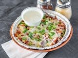 Potato wedges topped with, mozarella cheese, green onions, bacon bits, served with ranch dressing.