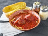 Pasta with two large meatballs served with Pepz homemade marinara sauce.