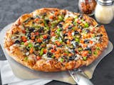 Spinach, mushrooms, green pepper, olives, onions, tomatoes, fresh garlic, extra cheese.